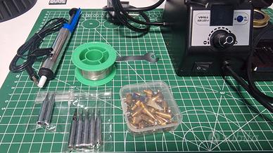 Questo saldatore a stagno ha più punti di fissaggio, ed è possibile collegare le 2 punte gemelle ovuque e seguire il circuito stampato da più angolazioni. L'erogatore del filo di saldatura può essere installato sul lato sinistro o destro della stazione così da utilizzare facilmente il filo per la saldatura. Il kit di pulizia con punta in lana di ottone ha una copertura resistente alla temperatura per evitare schizzi ed è dotato di uno slot per l’alloggiamento della spugna.