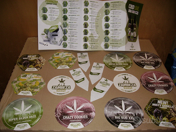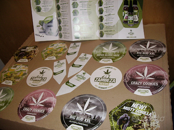 Comprende: 12 stickers diametro cm 12,1 catalogo completo cm 21x50 stampa su ambo i lati,
