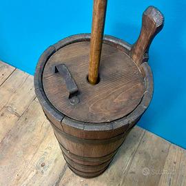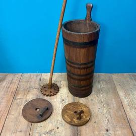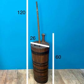 Antica zangola per fare il burro in casa Realizzato in Friuli verso la fine dell’800 Tutto in legno massiccio e originale Completo e funzionante, ottimo esemplare dei mestieri contadini di un tempo. Ideale per decorare case in montagna, locali e ristoranti Le condizioni sono buone, ottima patina e nessun difetto evidente Piccoli (normali) segni del tempo Le misure sono: H tot. 120 larghezza 26 H solo barile 60 Spedisco con imballaggio professionale a prova di corriere.