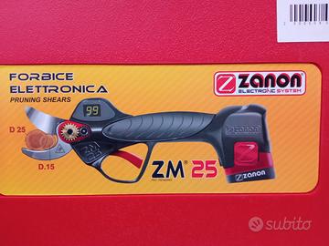 Kit forbice elettrica da potatura Zanon ZM 25 , ampiezza di taglio variabile da 15 a 25 mm , valigetta con tre batteria da 16.8 V. e 2.5 Ah garantendo la possibilità di lavorare un'intera giornata , forbice leggera ed ergonomica con pratico display retroilluminato