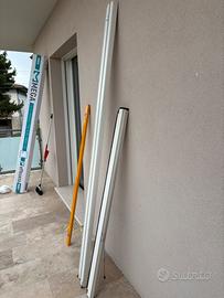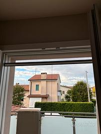 Zanzariera verticale marca MVline modello Casper con telaio color bianco opaco e telo in fibra di vetro color grigio, apertura a molla con chiusura rallentata, cassonetto squadrato da 50, installazione da incasso- misura 1469x2248