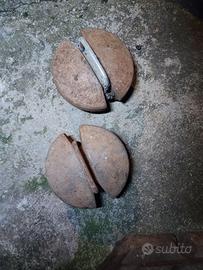 vendo due zavorre per ruote anteriori trattorino tagliaerba Diametro circa 15cm, interasse fori 95mm, peso 8kg ciascuna