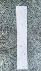 70 pannelli in marmo bianco lavorato con venature grigie, superficie satinata: lunghezza cad. 61 cm. - larghezza 10,2 centrimentri - spessore 0,9 centimetri. Per zoccolino/battiscopa. Totale circa 43 metri lineari.