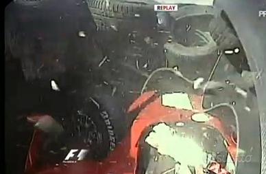 Diorama di un modellino diecast in scala 1/18 ,della Ferrari F1 F2007,marca Hotwheels, ambientato dopo il crash che il pilota Kimi Raikkonen ebbe durante le prove libere durante il weekend del GP di Monza.In teca di metacrilato con misure seguenti:lunghezza 30 cm., larghezza 15 cm.,altezza 11 cm.