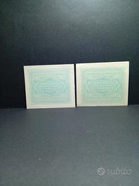 LE DUE BANCONOTE DEL 1943 ( ALLIED MILITARY CURRENCY) DI OCCUPAZIONE AMERICANA IN ITALIA, SI PRESENTANO RIGOROSAMENTE AUTENTICHE, IN QUALITÀ DI CONSERVAZIONE IN ( FDS).