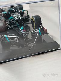 Modellino formula 1 in scala 1:24 con teca in plexiglass. La teca presenta due crepe sui lati corti e una sul lato superiore, come da foto
