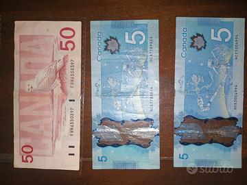 1 banconota Canada 50 dollari 1988 e 2 da 5 dollar