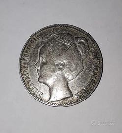 1 Gulden 1906 Paesi BassI Regina Wilhelmina Rare Argento.