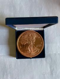 Questa moneta da 1 libbra in rame rende omaggio all'American Silver Eagle con uno splendido design patriottico. Questo popolare design è ora disponibile in una moneta da 1 libbra in rame più collezionabile.