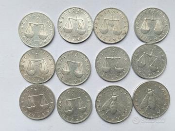 monete circolate della Repubblica italiana da 1 lira cornucopia annate 1954-1955-1958-1959 e 2 lire ulivo 1953 e 1954 tutte in buone condizioni estetiche e alcune in ottime condizioni estetiche