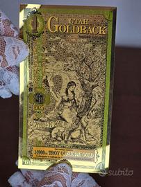Vi presentiamo un prodotto unico lanciato nello stato dello Utah: la banconota d'oro da 1 Goldback, la prima valuta locale e volontaria realizzata interamente in oro puro. La banconota d'oro si distingue perché rappresenta la più piccola unità d'oro fisicamente negoziabile che può essere acquistata. L'esclusiva banconota da 1/1.000 di peso, realizzata in oro 24 carati, è ricoperta da un sottile strato di laminato per proteggerla dai danni. Prendendo spunto dallo 1 Utah Goldback Banconota Oro, 1/1000 oz Utah, altri due stati, il Nevada e il New Hampshire, hanno creato banconote molto simili.