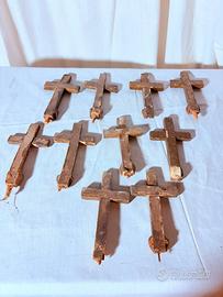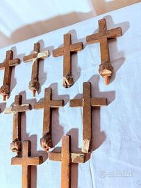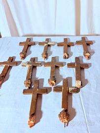 Vendo 10 croci in legno dipinto in oro, a rappresentare le stazioni della Via Crucis. Oggetti dal forte valore spirituale e devozionale, mostrano segni del tempo che ne confermano l’autenticità e l’utilizzo in contesti religiosi. Ideali sia per ambienti liturgici sia per chi desidera custodire un simbolo di fede. Disponibile la spedizione o ritiro di persona. Si presentano esattamente come in foto.