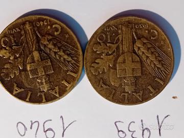 lotto 4 monete 10 cent. Vittorio Emanuele III 1939 1940 2941 1942 buone condizioni, vendo viste e piaciute