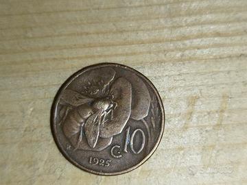 Da collezione privata vendo 10 centesimi ape anno 1925 REGNO D ITALIA in condizioni come da fotografie .