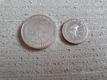 vendo due monete da 10 e 25 ECU della Grecia del 1994, sono in argento 999, sono rappresentati due delfini e la cornucopia, bordi zigrinati, quella da 10 ha diametro 28,2 mm, pesa 20 grammi, quella da 25 ha diametro 37,2mm e pesa 28 grammi.
