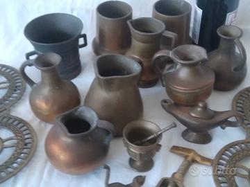 8 vasi , 2 mortai , 2 poggiapentole , 1 lampada di Aladino , un tirabuscion ed un gatto porta anelli on bronzo fuso a terra per un totale di circa 10 kg. Si accettano proposte.