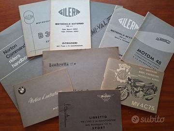 COME DA FOTO SVENDO IN BLOCCO 10 LIBRETTI NUOVI (6€ CIASCUNO) : BMV R25 - GILERA NETTUNO - GILERA B300 - GILERA SATURNO -LAMBRETTA 125 E- MOTOM 48 - MIVAL - MV AGUSTA 4 C75 - NORTON COMMANDO 750 - RUMI S.125.