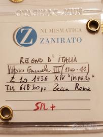 10 lire impero 1936 Vittorio Emanuele III . Periziata Spl+