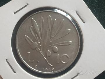 Nel 1964 fu coniata la prima moneta da 10 lire della Repubblica Italiana, denominata anche moneta da 10 lire Olivo, in riferimento alla raffigurazione di un ramoscello d'olivo su una delle facce della moneta. Dall'altra parte è invece raffigurato il cavallo alato Pegaso con la scritta sottostante "REPUBBLICA ITALIANA". La moneta da 10 lire Olivo è stata coniata in una lega chiamata Italma per una misurazione di 29 mm per 3 grammi di peso. La coniazione di queste monete avvenne dal 1964 fino al 1950, mentre a partire dal 1951 fu invece introdotta la moneta da 10 lire Spighe. Il primo pezzo coniato tramite la dicitura "PROVA" al di sotto del ramoscello d'olivo non risulta collezionabile e riporta il primo anno di emissione della moneta stessa. Il suo prezzo di valutazione tuttavia, in fior di conio, può sfiorare le 500 euro, mentre una moneta da 10 lire Olivo in condizioni Splendido può arrivare a valere fino a 350 euro e un pezzo in buone condizioni fino a 200 euro.