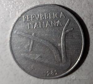 Descrizione Diritto: Due grosse spighe di grano divergenti verso l'alto con l'indicazione del valore "10" al centro. Descrizione Rovescio: La figura di un aratro rivolto a destra, simbolo del lavoro agricolo e della ricostruzione post-bellica.
