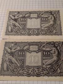 10 LIRE-"TESTA DI GIOVE"-FDS-2 BANCONOTE-COME FOTO-VENDO IN BLOCCO A 30,00 euro-NO OFFERTE-NON VENDO SINGOLO PEZZO-CONTATTO E-MAIL