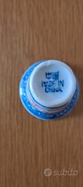 Si tratta di 10 tazze da sakè cinese in porcellana con motivo a chicco di riso e decorazioni blu e rosse.