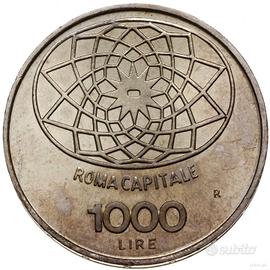 Italia - Roma Capitale - 100° Anniversario La moneta da 1000 Lire del 1970 è una moneta commemorativa in argento emessa per celebrare il centenario dell'istituzione di Roma come capitale del Regno d'Italia. Questo evento storico ebbe luogo nel 1870, quando le truppe italiane entrarono a Roma, completando il processo di unificazione italiana e chiudendo simbolicamente l'era della frammentazione politica nella penisola appenninica.