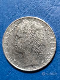 moneta da 100 lire del 1955 soprannominata "Minerva" presenta al dritto il profilo della dea Minerva ed al rovescio una testa d'Italia laureata.