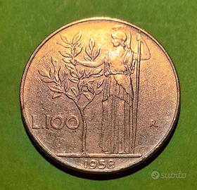 ●Moneta da 100 Lire 1958 "Minerva" Repubblica Italiana. Periodo 1946-2001 Pz. 25.640.000