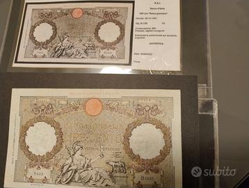 VENDO 100 LIRE CAPRANESI AQUILA ROMANA TESTINA RETRO BI RSI 08/10/1943 CONDIZIONI BB+ CON CERTIFICATO. Come si può vedere dalle foto le banconote sono in condizioni eccezionali, difficili da trovare tutte insieme in queste condizioni. Vengono dalla mia collezione privata. Ho molte altre banconote in condizioni eccezionali da vendere, per info contattatemi. Metto l'elenco qui sotto: -------------------------- OCCUPAZIONE TEDESCA IN ITALIA 50 RPF 1 REICHSMARK 2 REICHSMARK 5 REICHSMARK 20 REICHSMARK 50 REICHSMARK -------------------------- AM-LIRE 1943 1 LIRA 2 LIRE 5 LIRE 10 LIRE 50 LIRE 100 LIRE 500 LIRE 1000 LIRE AM-LIRE 1945 5 LIRE 10 LIRE 50 LIRE 100 LIRE 500 LIRE 1000 LIRE -------------------------- SERIE CASSA VENETA DEI PRESTITI 5 centesimi 10 centesimi 50 Centesimi 1 LIRE 2 LIRE 10 LIRE 20 LIRE 100 LIRE 1000 LIRE ------------------------------------------------------------- REPUBBLICA SOCIALE ITALIANA 1943-1945 50 LIRE LUPA CAPITOLINA 50 LIRE BARBETTI 100 LIRE BARBETTI 100 LIRE CAPRANESI 500 LIRE BARBETTI 1000 LIRE CAPRANESI 1000 LIRE BARBETTI --------------------------- LUOGOTENENZA 1944-1946 1 LIRA 2 LIRE 5 LIRE ELMATE 10 LIRE GIOVE 50 LIRE TURRITA 100 LIRE TURRITA 100 LIRE BARBETTI 500 LIRE BARBETTI 1000 LIRE BARBETTI 5000 LIRE TITOLO PROVVISORIO 10000 LIRE TITOLO PROVVISORIO --------------------------- REGNO D'ITALIA 1893-1943 1 LIRA DUE BANCONOTE x2 5 LIRE IMPERO 1940 5 LIRE ELMATA 1944 10 LIRE VITTORIO EMANUELE III 1000 LIRE CAPRANESI