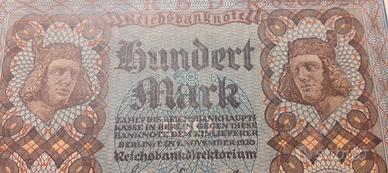 Banconota storica da 100 Marchi tedeschi emessa nel 1920.