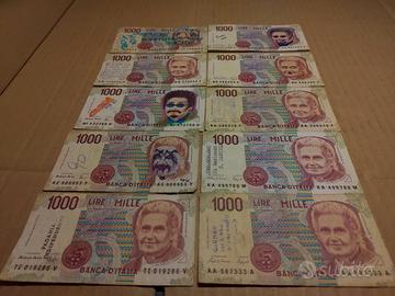 1000 LIRE-BANCONOTE CON SCRITTE-PEZZI 19-COME FOTO
