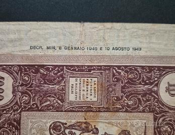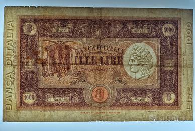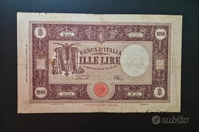 Banconota 1000 Lire Grande M (B.I) Lungotenenza 08-01-1946 Firme: EINAUDI-URBINI Banconote molto circolata con sporco diffuso, pezzetti di carta mancante e vari imperfezioni. Dettagli e difetti in foto