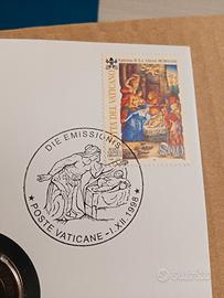 1000 lire Vaticano di Giovanni Paolo II, in folder Natale 1998 con francobollo e annullo postale ufficiale