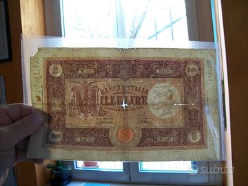 Banconota della Repubblica da 1000 lire, decreto 18/01/1947, firme Einaudi Urbini, serie W2461-026049.