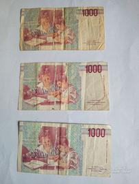 Vendo a collezionisti o appassionati in blocco N°3 Banconote 1000 Lire 3 ottobre 1990,in buone condizioni come da foto,X info 3341879644 Mauro