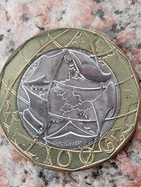 1000 lire moneta 1997 con errore di conio nei confini : la germania dell ovest risulta ancora separata dalla germania dell est anche se l'unificazione delle due germanie e' anteriore : 03.10.1990 ! corretta l ultima foto 5 allegata e la mappa allegata foto 4 come confronto foto 6 a riprova dell errore di conio nella perimetrazione dei confini . la moneta 1000 e' una moneta bimetallica chiamata " europa " esternamente in bronzital internamente in cupronichel . moneta circolante solo negli anni 1997 e 1998 . frontale con italia turrita e sei stelle a disegno e incisione di uliana pernazza . retro con raffigurazione dell'europa con disegno e incisione di laura cretara .