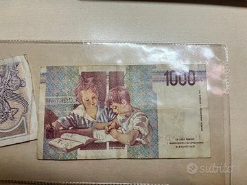 Maria Montessori a destra, sigillo della Banca d'Italia (leone alato di San Marco, simbolo di Venezia, sopra i tre scudi di Genova, Pisa e Amalfi)