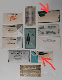 Lotto di 11 vecchie lamette da barba di varie Marche, 9 in buone/ottime condizioni, 2 con piccoli difetti sul retro della confezione ( vedi ultima foto). La confezione "PALMOLIVE " contiene più lamette .