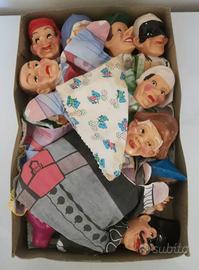 12 Burattini vintage anni '60 con scatola teatrino originale Maschere d'Italia