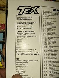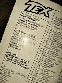 vendo collezione di fumetti diTex Willer, pubblicata daSergio Bonelli Editore, comprende diversi numeri classici risalenti principalmente ai primi anni '90. Sergio Bonelli Editore Elenco dei fumetti nell'immagine Ecco il dettaglio degli albi visibili, organizzati per riga: Prima riga (Dall'alto): Tex n. 363:Orme sulla sabbia(gennaio 1991). Tex n. 361:La montagna sacra(novembre 1990). Tex n. 364:Il medaglione spagnolo(febbraio 1991). Tex n. 365:L'uomo con la frusta(marzo 1991). Seconda riga: Tex n. 362:Desperados(dicembre 1990). Tex n. 371:La spia(settembre 1991). Tex n. 357:La mano nella roccia(luglio 1990). Tutto Tex n. 75:La bufera(ristampa di un classico di Gianluigi Bonelli e Aurelio Galleppini). Terza riga (In basso): Tex n. 360:Le colline del vento(ottobre 1990). Tex n. 358:Il tesoro della città perduta(agosto 1990). Tex n. 307:Il giorno della paura(maggio 1986). Tex n. 374:La pistola nascosta(dicembre 1991). Sergio Bonelli Editore+6 Copertine:Quasi tutte le copertine mostrate sono opera dello storico disegnatoreAurelio Galleppini(Galep). Autori:Tra gli sceneggiatori di questi numeri figurano nomi storici comeGianluigi BonellieClaudio Nizzi