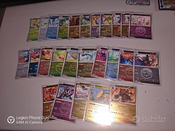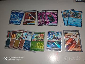 Possibilità di scambio o vendita solo tutte insieme al Romics il sabato o dall'11 nei dintorni di Roma. Lista per esp.: Twm crepuscolo mascherato - 2 sinitscha 023 Paf Destino di paldea - espathra 006 - solcoferreo 066 Pal evoluzioni a paldea - Bellibolt 079 - squawkabilly 169 Jtg avventure insieme - Dudunsparce 121 Pre evoluzioni prismatiche - dragapult 073 - noivern 091 - hydrapple 011 - noivern 091 - henzo 134 Blk luce nera - 2 Meloetta 044 - 2 excadrill 046 - 2 kyurem 028 - pokeball victini 012 Ssp scintille folgoranti - 3 kilowattrel 068 - 3 durant 004 - Scovillain 037 Dri rivali predestinati - yanmega 003 - 2 electivire 069 - 2 metagross 145 - 2 regirock 101 Svp promo scarlatto violetto - skeledirge 034 - fogliaferrea 128 - grafaiai 100 - 3 cyclizar 018 - koraidon 197 - koraidon 029 - baby shiny quaxly 082 - baby shiny quaxwell 083 Wht Fuoco bianco - Hydreigon 067 - 2 whimsicott 005 - hydrapple 011 - 3 jellicent 045 - 3 bouffalant 077 - 4 keldeo 030 - pokeball litwick 016 - pokeball mienfoo 052 - masterball vanillish 028 Pfl fiamme spettrali - oricorio 018 - 2 empoleon 070 - 6 rotom 029 - 5 mismagius 036 ASC Ascesa eroica - stunfisk 114 - mandibuzz 139 - 2 Dudunsparce 164 - ricetrasmettitore del team Rocket 263 Pokeball ascesa - 2 togetic 081 - 2 hitmontop 102 - 2 dunsparce 163 - 2 delcatty 166 - 2 helioptile 063 - 2 scorbunny 036 - budew 016 - drampa 176 - glastrier 054 - silcoon 012 - carkol 119 - vikavolt 066 - komala 175 - Rayquaza 153 - gabite 110 - gible 109 - swirlix 093 - cramorant 177 - linoone 131 - charmander 020 - weepinbell 005 - beautifly 013 - Dragonair 151 - salazzle 035 - vanillish 050 - darmanitan 033 - staravia 169 - Groudon 108 - munkidori 099 - reshiram 154 - heliolisk 064 - colossal 120 Giapponesi varie: - 2 tromba di vetro 215 - 2 ricetrasmettitore del team Rocket 217 - fiamma ossidrica 101 - shiny sneasler 079 - pokeball scraggy 054 - masterball cinese floragato 0205