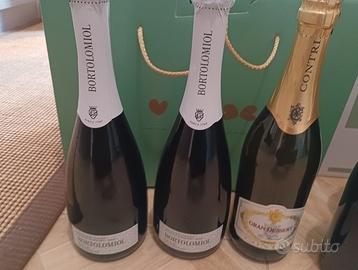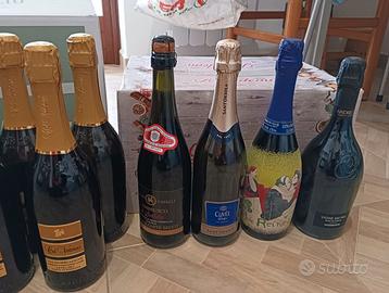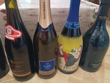 Lotto di 13 bottiglie di spumante e vino: 6 bottiglie di spumante Col Veratoz entra dry Coste di Ponente da 0,75 LT. (Valore 14 euro l'una); 1 bottiglia di vino spumante dolce Contri gran dessert 0,75 LT ( valore 2,15 euro); 1 bottiglia di vino spumante dolce Cuvèe Sant'Orsola da 0,75lt (valore 4,90 euro); 2 bottiglie prosecco superiore Bortolomiol da 0,75lt (valore 10,30 l'una); 1 bottiglia Vigne dei piai Rive di Rolle Andreola prosecco da 0,75 LT (valore 12,84 euro); 1 bottiglia Luna Nuova la Pieve vino spumante da 0,75lt (da collezione circa 25 euro); 1 bottiglia Nando Cavalli lambrusco di Sorbara vino spumante secco da 0,75 LT (valore 4,98 euro). Valore totale del lotto 154,47 euro, svendo a 70 euro tutte le 13 bottiglie. Non vendo singolarmente e non spedisco. Solo ritiro a mano a Chioggia.