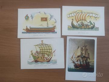 13 cartoline nuove di vari anni di navi da guerra moderne e antiche, anche di velieri antichi e moderni