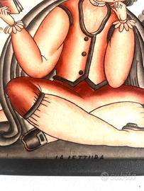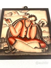 13 - GIO PONTI RICHARD GINORI S. CRISTOFORO MATTONELLA GIO PONTI RAFFIGURANTE "LA LETTURA" DIMENSIONE 14,5 x 14,5 cm. Perfetta