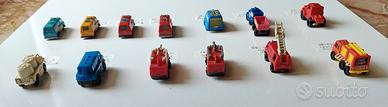 Raro lotto di 13 modellini di veicoli vintage in miniatura in prevalenza da Sorpresine Kinder Ferrero e Giodi e uno da Promotoys, relativi agli anni ‘80-‘90, realizzati in plastica colorata, con discreti dettagli cromatici e due anche con motore con meccanismo a volano.