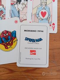 Vendo raro, bellissimo & colorato mazzo di carte della Marvel Spider Man by Modiano, del 1994, composto da 52 carte più i 2 Jolly, nuovissime & mai usate, nella loro confezione originale (vedi foto). Spese di spedizione a carico di chi acquista.