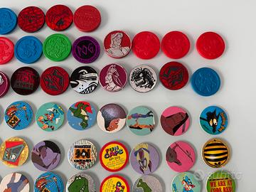 Vendo lotto composto da circa 140 POGS / CAPS / FUN CAPS originali anni 90, ideali per collezionisti o appassionati di oggetti vintage.
