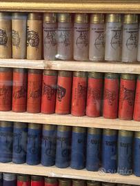 Quadro decorativo di cartucce vuote, l’elenco allegato rappresenta forse una parte o tutte le marche presenti ( era nel retro del quadro) ma non ne sono sicuro. Non spedisco solo ritiro a mano in zona Ravenna. I riflessi e le sfumature che si vedono sul vetro sono dovute alla luce e la flash della macchina fotografica .
