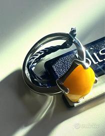 16 - Anello BLISS argento 925/00 - con giada gialla naturale a taglio cabochon - nel gambo laterale e' incastonato un piccolo diamante naturale di carati 0,005 misura mm 15,5 - 16,5 mm garanzia originali BLISS, prezzo di cartellino Bliss (annesso) euro 69,00